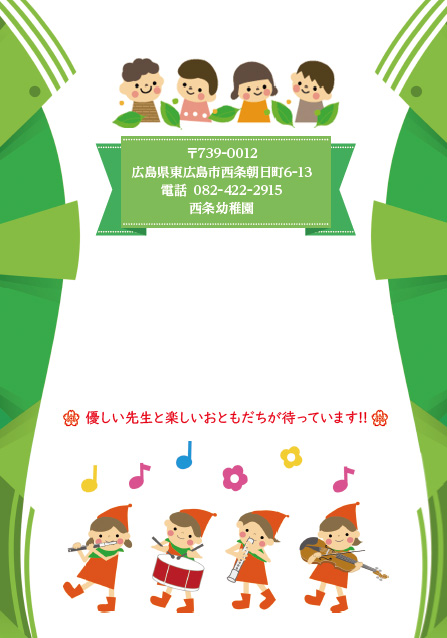 ※2号認定・3号認定ご希望の方は東広島市が入園受付窓口となります。入園をご希望の際は書類を提出される前に幼稚園にお電話にてご連絡いただき、面談日を決定します。面談日に重要事項説明書について説明をいたしますので園生活の内容をご理解をいただいた上で市の窓口に書類をご提出ください。 入園の決定は市が行いますので、面談いただいた場合でも必ず入園が決定するとは限りませんことをご了承ください。